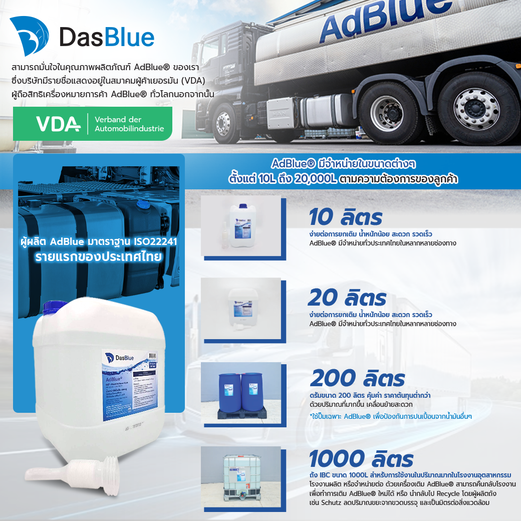 AdBlue เป็น สารละลายยูเรียความบริสุทธิ์สูง (Automotive Grade)