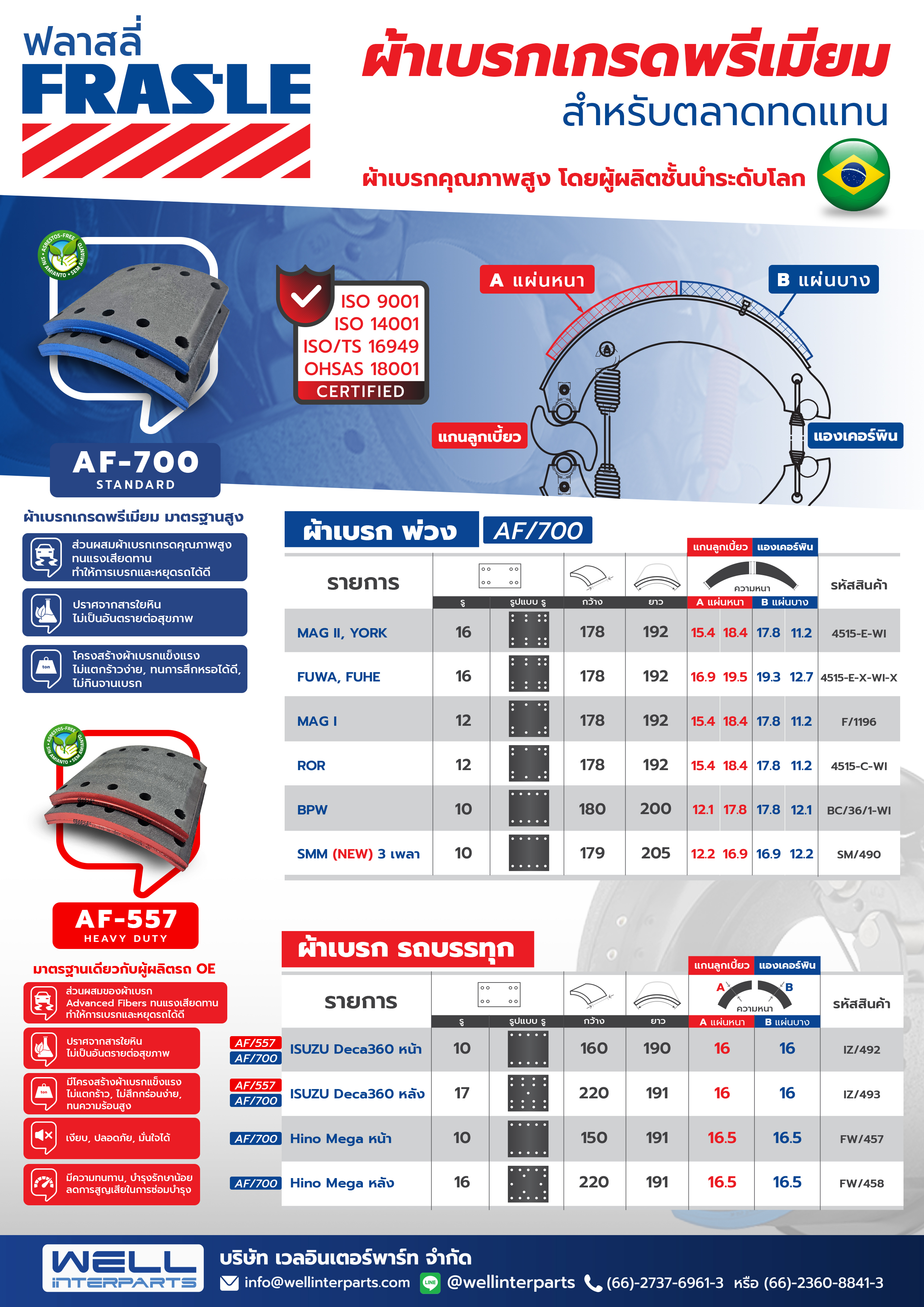ฟลาสลี่ ผ้าเบรกเกรดพรีเมียม สำหรับรถบรรทุก, รถพ่วงและรถเทรลเลอร์ ผ้าเบรกคุณภาพสูง