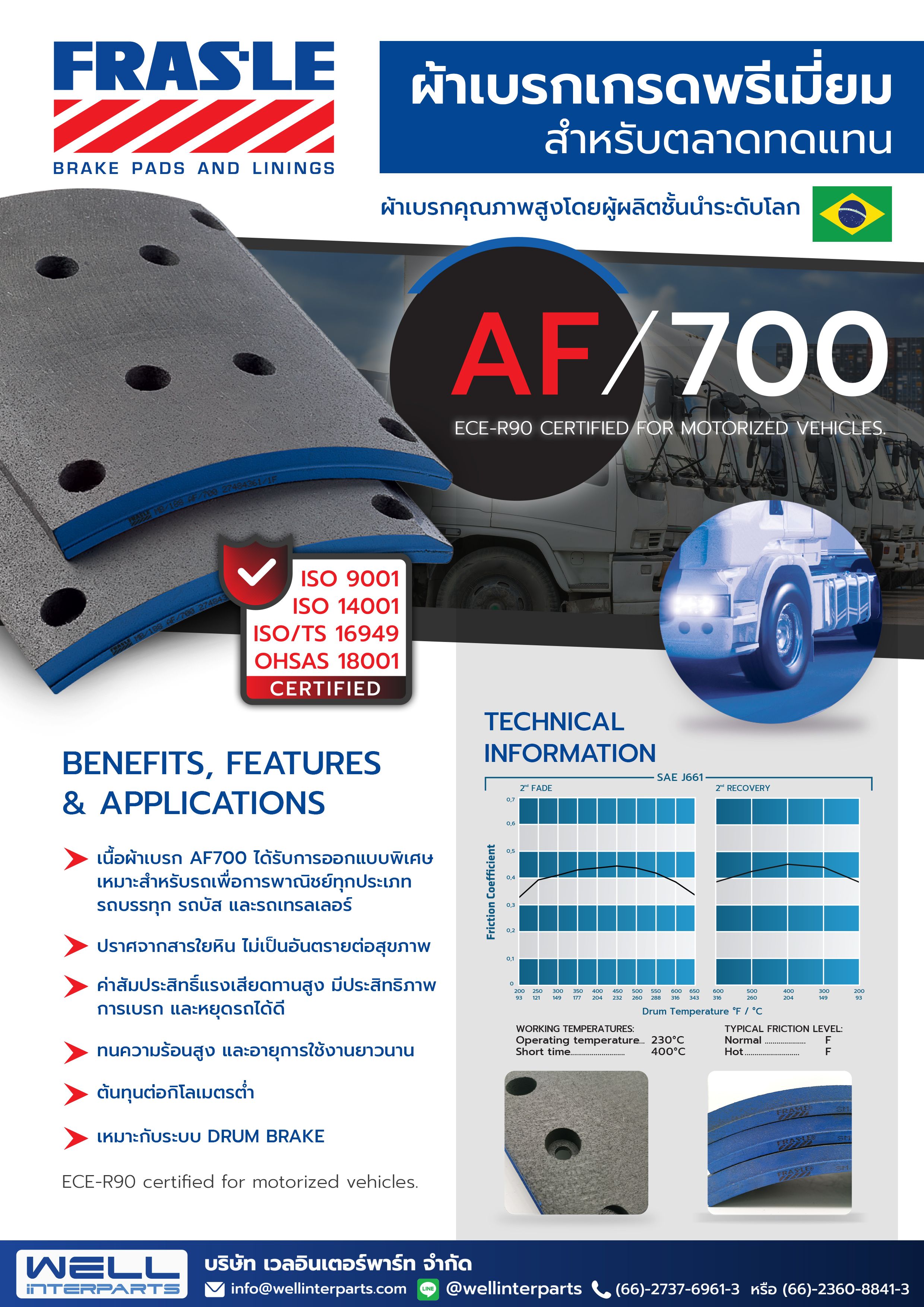 ฟลาสลี่ ผ้าเบรกเกรดพรีเมียม สำหรับรถบรรทุก, รถพ่วงและรถเทรลเลอร์ ผ้าเบรกคุณภาพสูงผลิตโดยผู้ผลิตชั้นนำระดับโลกจากประเทศบราซิล มาตรฐาน ECE-R90 certified for motorized vehicles