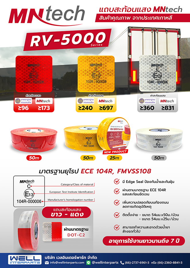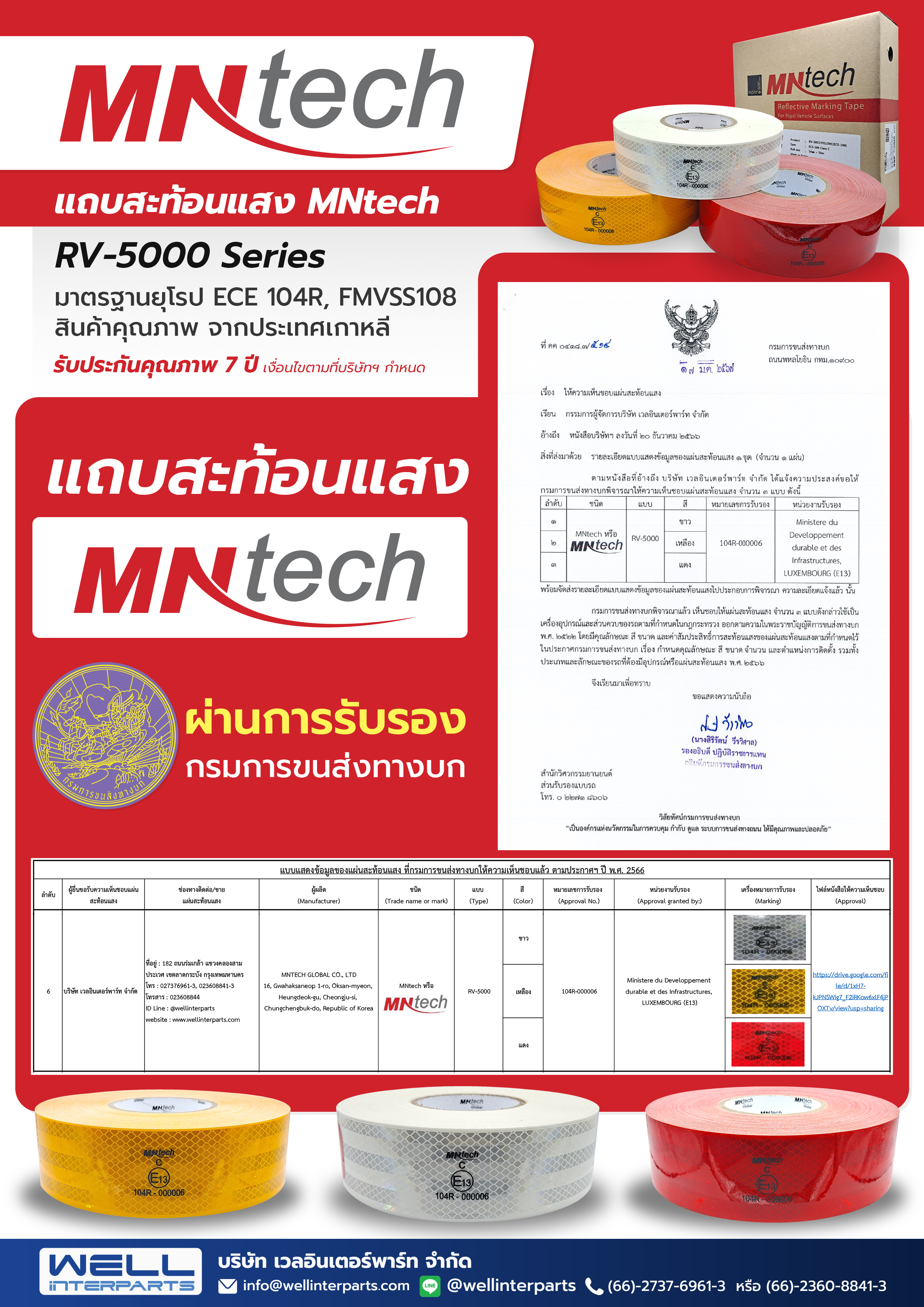 MN Tech Global เป็นผู้ผลิตแถบสะท้อนแสงโดยใช้นาโนเทคโนโลยีขั้นสูง เป็นผู้ให้บริการแถบสะท้อนแสงชั้นนำของโลก ได้รับมาตรฐานยุโรป ECE 104R, FMVSS 108 และนำไปสู่ความปลอดภัย