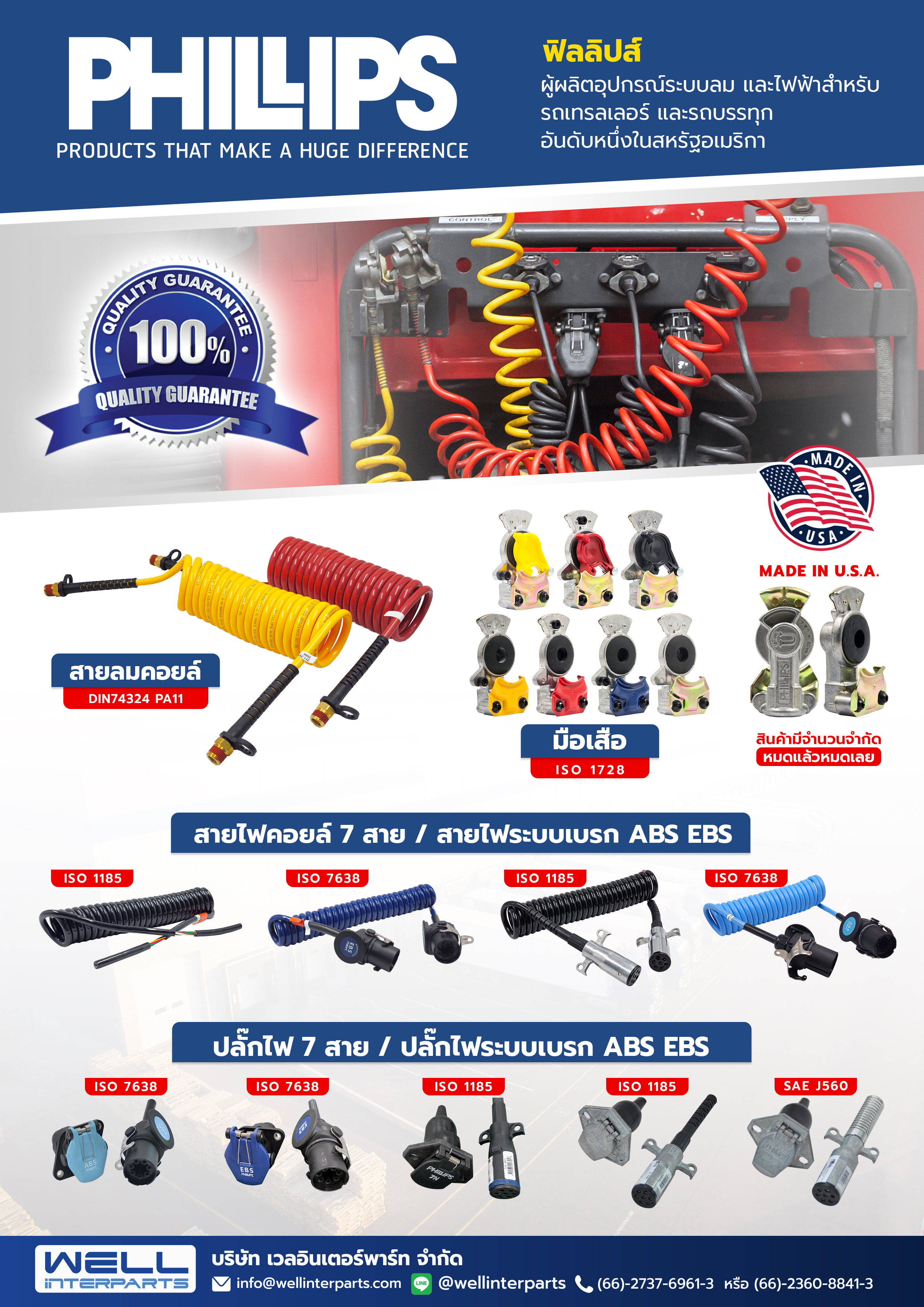 PHILIPS ผู้ผลิตอุปกรณ์ระบบลมและไฟฟ้า สำหรับรถพ่วง รถบรรทุก รถเทรลเลอร์