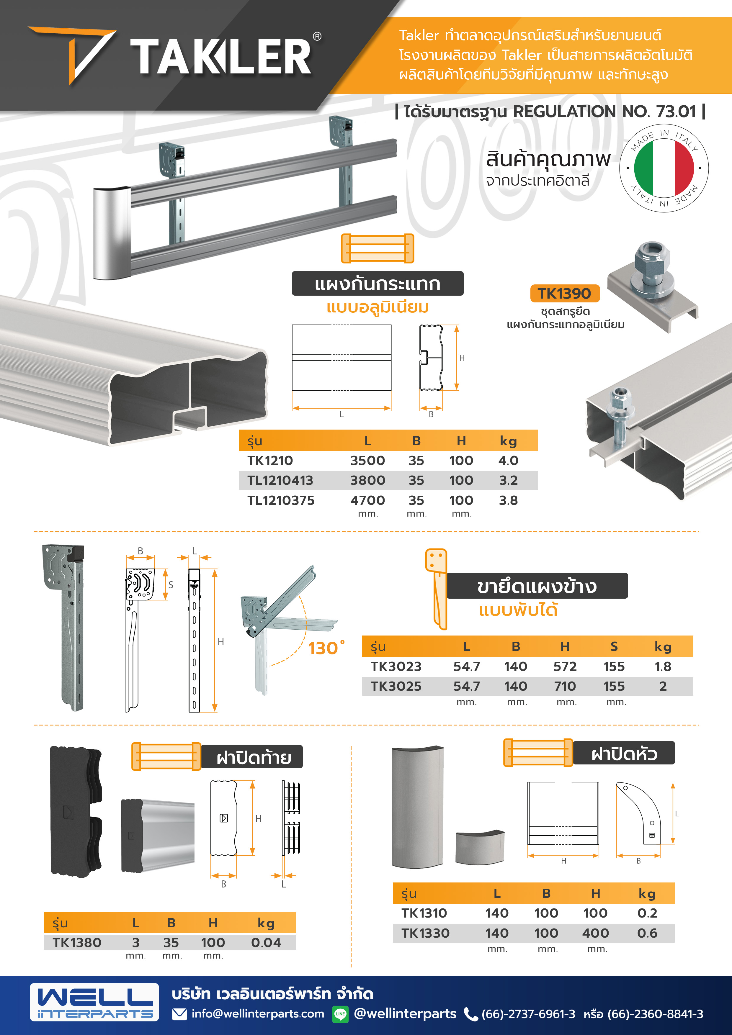 TAKLER เป็นหนึ่งในอุตสาหกรรมขนส่งด้วยส่วนประกอบและอุปกรณ์เสริม สำหรับรถพ่วง รถเทรลเลอร์ ถูกผลิตภายใต้มาตรฐาน ISO และผ่านมาตรฐาน 89/297/EEC